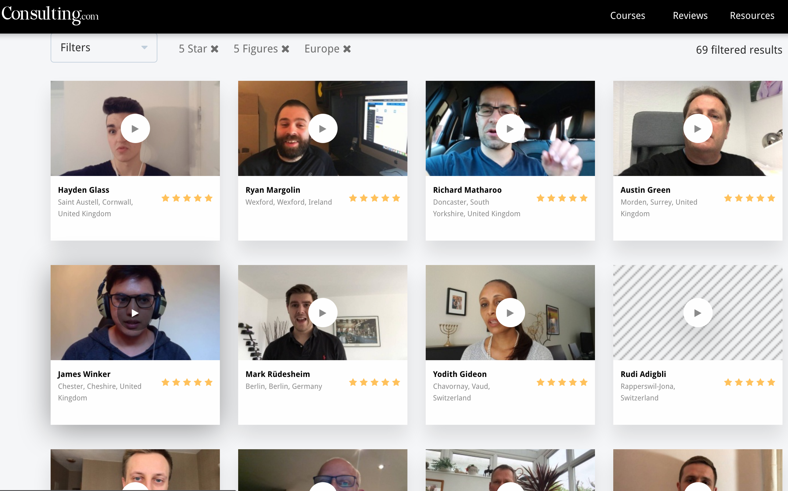 Un excellent exemple de page est celui de Consulting.com https://www.consulting.com/reviews